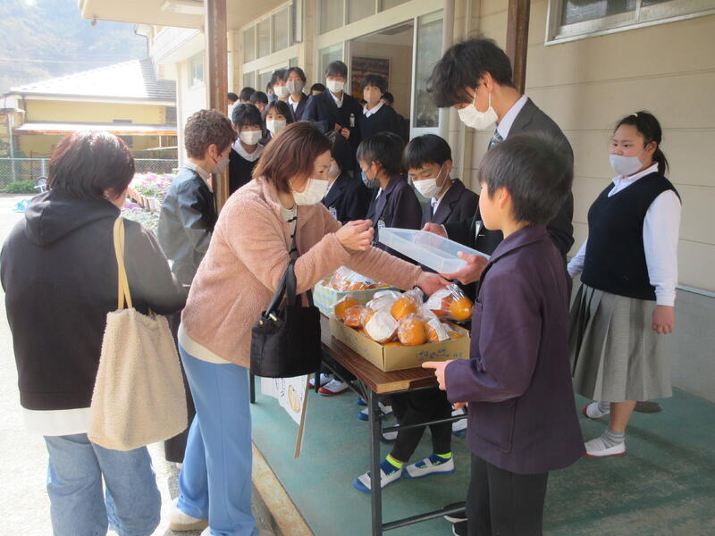 授業参観の日に合わせて、育てた甘夏を2個1袋に詰めて販売しました。価格は100円。売上金は能登半島地震の義援金にします。