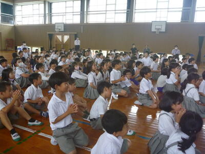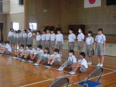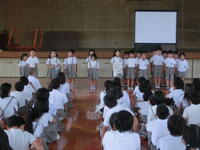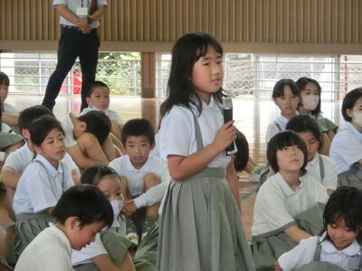 第1回わくわく集会(児童集会)が開催され、6年生が発表しました。