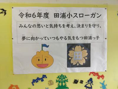 田浦小児童会スローガンを児童玄関に表示しました。「思いと気持ちを考える」ことできる児童を目指して、心を一つにする田浦っ子です( ^o^)ノ