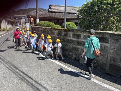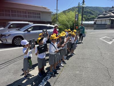 初夏を思わせる5月下旬(遅くなりました)1年生はタブレットを持って、学校近くの通学路を巡りました。