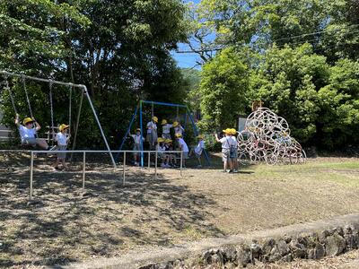 阿蘇神社で休憩(*^O^*) 汗をかきながら通学路を探検をした1年生でした。