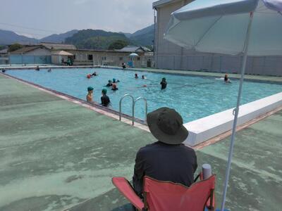 PTAによるプール開放が行われています。保護者のみなさん、暑い中大変ご苦労様です。