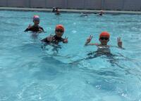 「先生見てください!」水中でくるくる回る子供たち。大プールでも、普段できないような泳ぎで楽しんでいました。