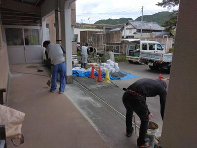 業者さんが入って手洗い場工事中です。暑い中、お疲れ様ですm(_ _)m