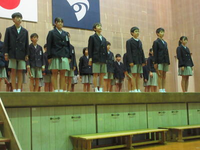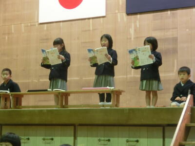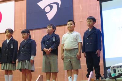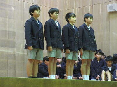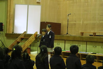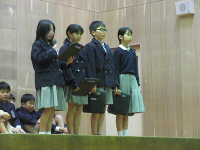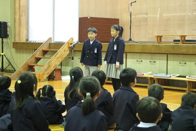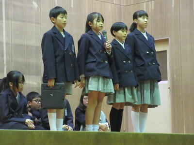 3年・4年代表児童による「発表上の注意」 しっかり聞いています。
