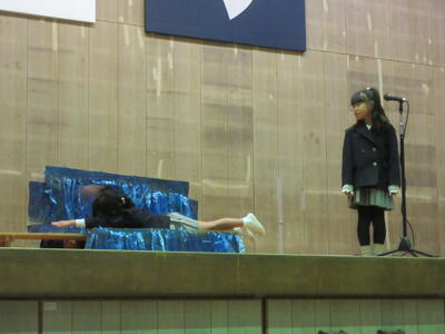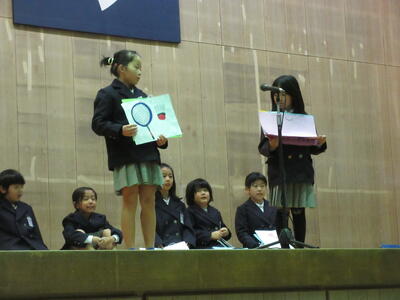 5年生は、「まもろう つくろう これからの未来」のテーマで、「水俣に学ぶ肥後っ子教室」で学んだ水俣病に関することや環境のことについて発表しました。