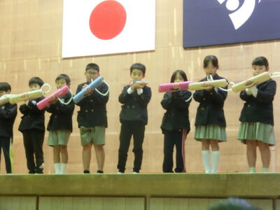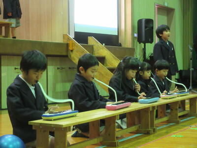 音楽の授業では合奏と歌も披露しました。入学してから、たくさんのことを勉強してきた1年生。とても成長したね(^_^)v