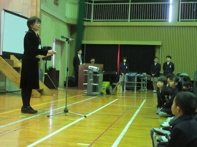 教頭先生からの「自分たちの伝えたいことはしっかり伝えられましたか?」の問いかけに、「はい!!!」と答える児童たち。よく頑張りましたね(^_-)