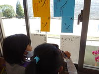 書写で年賀状を書く練習をしました。年賀状は、新年の挨拶の手段として昔から受け継がれてきた日本の伝統です。その意味を話した上で学習したことで、児童は真剣に取り組んでいました。