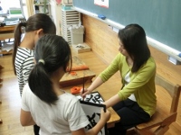 6年生は、家庭科でミシンを使ったエプロン作りに取り組んでいます。昨年、ナップザックを作っているので、ミシンの糸かけや縫い方はとてもスムーズで、順調に進んでいます。どんなエプロンが完成するか楽しみです。