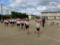 各学級ごとに準備運動をしてから、低学年は内側、中学年は真ん中、高学年は外側のコースを走ります。