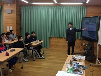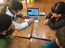 子どもたちは、グループになって1人2つずつ学校の自慢を出して、見せ合っていました。