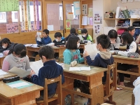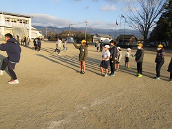 寒さ厳しい毎日ですが、1年生は寒さに負けず、多様な動きの運動や縄跳び練習を頑張っています。3学期に縄跳び大会があります。まだスムーズにできない前跳びや後ろ跳びの2分間跳びに挑戦中です。1人、また1人と、2分間跳び続ける児童が増えてきています。