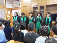 本日、「デル・フィオーレ」の皆様を迎えて、音楽鑑賞を行いました。本校児童のお母さんも2名おられ、子ども達も一緒に口ずさんだり、手拍子を打ったり、一年生も目を輝かせながら聞き入ってました。特に多良木小の人権の歌「えがおの花」の時には、自然と笑顔になっていました。歌が大好きな子ども達。素晴らしい歌声に「涙が出ました。」と感想を述べる児童もいました。貴重な時間をありがとうございました。