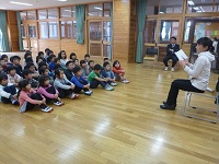 「ダンスは楽しいな。」(1年生) みんな笑顔で紙芝居を聞いています。(2年生)