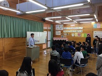 6年生では、道徳教育用郷土資料「熊本の心」から、国宝「青井阿蘇神社」を資料として授業を行いました。 授業の終末には、ゲストティーチャーとして、王宮神社の尾方恵さんをお招きし、人吉・球磨の文化遺産や伝統文化についてのお話を伺いました。尾方さんは、14年前まで青井阿蘇神社の宮司を務めておられ、国宝指定にも大きく関わっていらっしゃるということで、大変貴重なお話を伺うことができました。「地域の祭りや相撲大会、神楽等を知ったり体験したりして、それを語っていくことが、伝統を受け継いでいくことになる」という尾方さんの言葉が印象的でした。尾方さん、ありがとうございました。