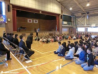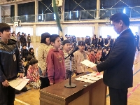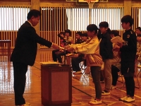 朝の時間に、全校集会を行いました。最初に、全員で元気よく校歌を歌い、続いて各種コンクールや部活動の入賞の表彰がありました。賞状を手渡された子どもたちは、とても嬉しそうにしていました。