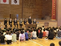 今日は、退任式でした。9名の先生方が、他の学校へ行かれることになったり、今年で退職されることになりました。寂しい思いでいっぱいです。最後は、みんなで花道を作り、先生方を拍手で見送りました。