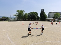 1年生と6年生は、団体競技の練習を体育の時間に行いました。