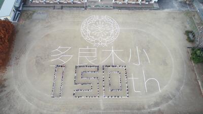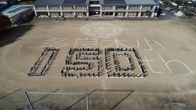児童と教職員、保護者や地域の皆様の総勢260人ほどで並んで写りました。