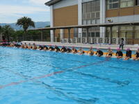 梅雨の合間を縫って、水泳(水遊び)の授業が始まりました。昨年までは、水を怖がって顔をつけようとしなかった子供も、その場の雰囲気で水しぶきがかかるのも気にせず、自分から水の中を走り回っています。最後は、子供たちが作る「うずまき」です。みんなで足並みをそろえ、大きな渦巻きを作りました。友達と一緒に流れに身を任せながら、水と仲良くなっています。伏し浮きやけのびも上手になって、来年度は、自信をもって大プールに入れればと思います。