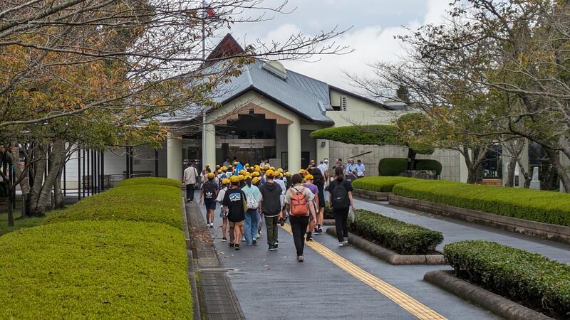 14時50分、知覧の特攻平和会館に到着しました。まず、語り部さんからのお話を伺い、その後展示を見ながら、戦争や平和について学びました。このあと、予定より55分遅れの16時10分に、今日最後の目的地 長崎鼻に向けて出発しました。