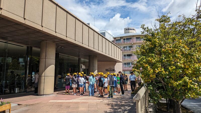 7時50分に退館式を行いました。一晩お世話になったホテルの方々にお礼を伝えました。その後8時05分に宿舎を出発し、鹿児島市立科学館ビッグアイに向かいます。