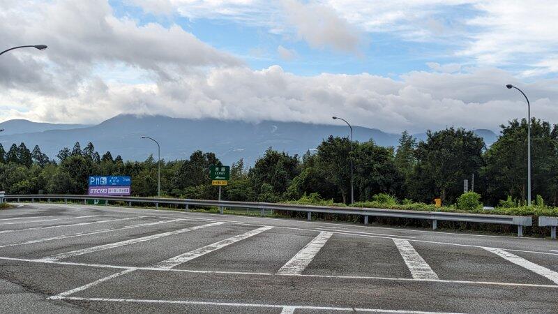 えびの市の天気はくもり、霧島も山頂は雲に隠れています。