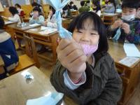 1年生の3学期最初の図工では、紙を破ったりねじったりして作品を作る活動をします。普段紙を大切に扱っている子供達は「本当にしていいのかな・・・」と、最初はおそるおそるしていましたが、紙の感触や様々な音に魅了され、夢中になって取り組みました^^