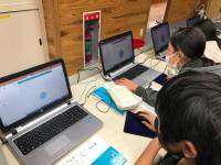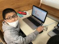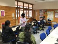 6年生の理科で、プログラミング学習を行いました。人感センサーの教材を用いて、「暗くなると明かりがつく」、「明るくなると明かりが消える」という街灯の点灯と同じようなプログラムを考えました。友達と協力し、試行錯誤しながら、意欲的に学習に取り組んでいました。
