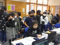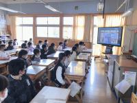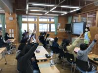 3、4時間目に、6年生が取り組んでいるオンライン英会話の様子を見学しました。英語のみでやりとりをする6年生の姿を前に、緊張した様子でしたが、見学を終えた後は、「学習が楽しみです。」という感想が多く挙がっていました。