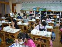 5年生は平仮名の練習で、「ありがとう」を小筆で書きました。瀧森先生に字形や筆使いなどアドバイスをもらったおかげで、みんな上手になりました。