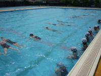 3年生は体育で、け伸びとばた足を中心に練習をしています。け伸びとばた足のポイントをしっかり理解して、運動に生かすことができています。子供たちは回を重ねるごとにめきめきと上達しており、「先生、け伸びで5メートル進めるようになりました!」「ばた足でプールの端から端まで泳げるようになりました!」とできるようになる喜びをたくさん感じています。