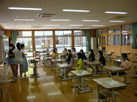 5年生は、給食について学習しました。瓜生栄養教諭から、給食の歴史や、今日の献立に入っているクジラについて話がありました。最後に給食センターの方に手紙を書きました。今回の学習を機に、感謝の気持ちをもって食べてほしいです。