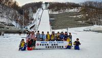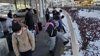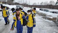 先ほど民泊家庭で過ごした子ども達が集合し、今から大倉山ジャンプ競技場に向かいます。みんなとても元気です!楽しみだね!多良木っ子!
