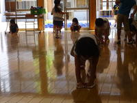 現在、1年生の子どもたちは、座席の間隔を広くとって学習することができるように、多目的室で学習しています。この横に長い多目的室の廊下の拭き掃除は、大変・・・ですが!やる気いっぱい1年生は、ぞうきんが真っ黒になるまで、ぞうきんがけをすることができます!おかげで、床は毎日ピカピカです^^