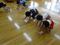 ※体育館では、すべての窓を開け、児童が密集しないよう配慮しながら授業を行っています。