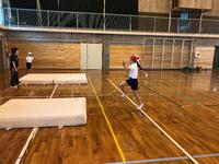 5年生では体育で走り幅跳びに取り組んでいます。今日は雨天のため、体育館で行いました。まず映像教材を視聴し、走り幅跳びのポイントは、「助走・踏切」「空中姿勢」「着地」ではないかと考えました。今日はセーフティーマットで練習を行ったため、特に「助走・踏切」にポイントを絞って練習しました。力強く踏み切るためにはどちらの足が良いか、助走を何歩にすれば良いかなど、自分に合った「助走・踏切」を考えながら練習していました。運動量はもちろんですが、よりよい練習方法などを考える時間も確保し、充実した体育の授業を目指していきたいです。