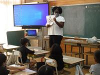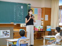1年生は、7月から新しく多良木町に来られたALTのアイシャ先生と一緒に、動物の名前について英語で学習しました。途中でゲーム等も取り入れて、楽しく学習することができました。