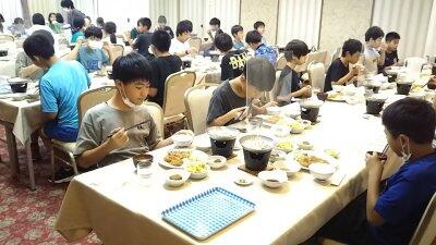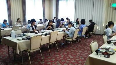 時間どおり7時に全員集合し、おいしい朝ごはんを頂きました。体調もみんな良いそうです。このあと、出発準備をして、8時に宿舎を出る予定です。