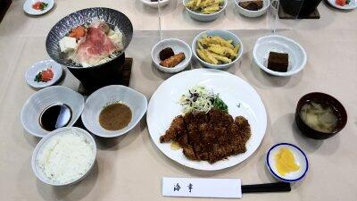 18:45、待ちに待った夕食です。メニューは、黒豚のトンカツとしゃぶしゃぶ、さつま揚げ、そしてガネ天と、鹿児島づくしです。ごはんのおかわりをする子もどんどん出て、さすがは食べ盛りの6年生という感じでした。