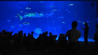16時30分、今日最後の目的地であるいおワールドかごしま水族館に到着しました。最も楽しみにしている子どもが多い施設だったようです。特に今回は、日頃見ることのできない「バックヤード」も見学させてもらえるということで。子供たちも興味をもてたようです。