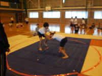 昼休みに体育委員会主催のすもう大会(中学年の部)が開催されました。男子11チーム、女子9チームが参加し、熱戦が繰り広げられました。他の学年の児童や先生方も多く観戦し、大盛り上がりでした。