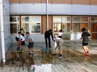 5月18日(水)にプール掃除をしました。当日は気温も高く、絶好のプール日和となり、子どもたちも元気よく掃除に取り組んでいました。はじめは、滑りやすい床を恐る恐る歩きながら掃除していた子どもたちでしたが、慣れてくると、きゃっきゃきゃっきゃとはしゃぎながら、一生懸命にがんばりました。最後はきれいになったプールに寝そべって、みんなで記念撮影をしました。6年生の子どもたちにとっては最後のプール掃除であり、感慨深いものだったようです。6月6日(月)から水泳の学習が始まります。命を守るための大切な学習ですので、しっかりと取り組んでほしいと思います。頑張れ多良木っ子!
