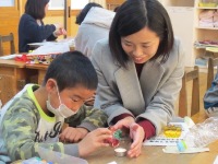 今日の2年生の授業参観は、インフルエンザでお休みの子どもが多かったので、授業内容が、生活科発表会から親子工作に変更されました。親子工作では、ペットボトルを使って花の飾りを作りました。ペットボトルを花の形に切って色づけし、形を整えていきました。親子で楽しくそれぞれの花を咲かせることができました。