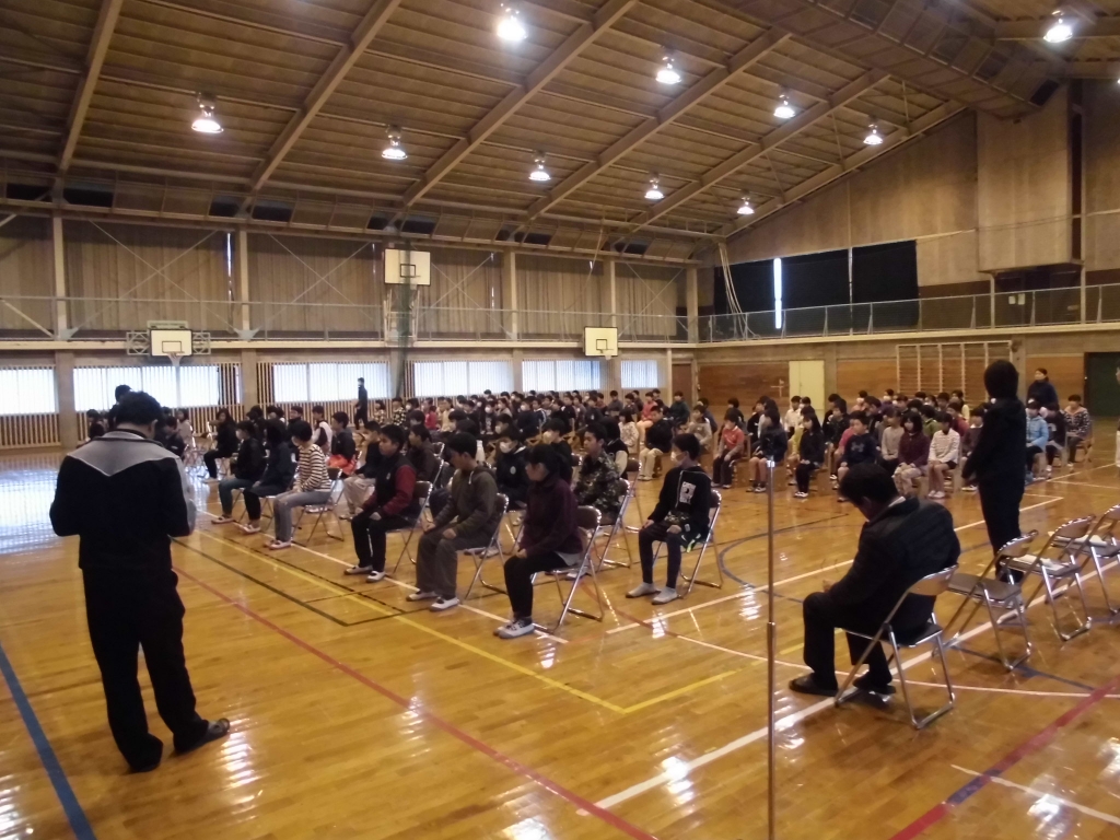 今日は、午後から多良木中学校の説明会がありました。多良木町内の3つの小学校の6年生が多良木中学校に集まりました。