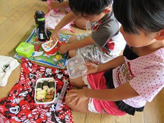 今日は、弁当デーでした。今年度4回目となる今日は、子ども達はこれまでよりもさらに上のコースを目指して弁当づくりにチャレンジしていたようでした。弁当の時間になると、友達と中身を見せあい、楽しく会話をしながら食べていました。保護者の方々には、弁当づくりに御協力御協力いただき、ありがとうございました。