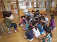 今日は、朝の活動の時間に読み聞かせがありました。子ども達は毎月のこの時間を楽しみにしており、保護者の方や高校生から読んでもらう物語の世界に静かに聞き入っていました。