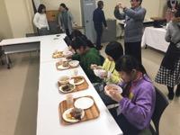 スキー体験の後は、南幌小学校の見学をさせてもらいました。南幌小学校では、全校集会に参加し、多良木町の紹介をしました。他にも、交流給食や南幌小学校の児童と一緒に遊ぶ時間もあり、楽しい時間を過ごすことができました。