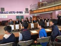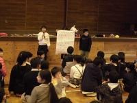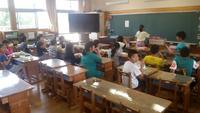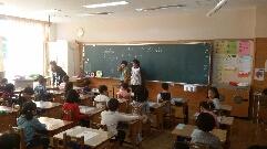 最後に、多良木中学校の英語の先生から、中学校での英語の学習について「小学校の学習をもとに、しっかり中学年生での英語の勉強をすれば、2年生や3年生の英語は難しくないので、がんばってください。」と話をしていただきました。これからも、外国の人と出会ったときでも気軽に会話ができるように、外国語活動の授業をがんばっていきます。